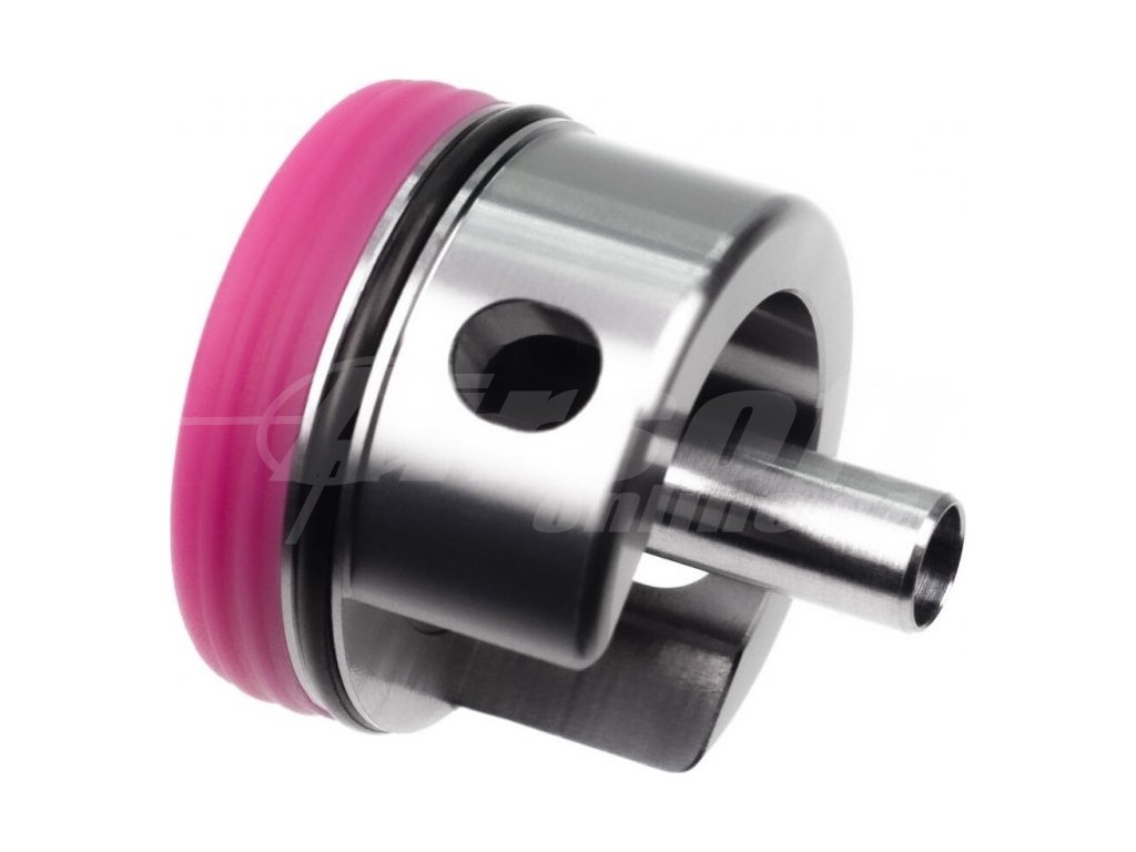 Tato vylepšená hlava válce je navržena pro maximální těsnost, tiché fungování a optimální kluznost trysky. Díky precizní výrobě a použití špičkových materiálů přináší zvýšení výkonu, ztišení výstřelu přímo v mechaboxu a zároveň chrání mechabox před přetížením. Hlava válce obsahuje výměnnou dopadovou gumu s těsnící drážkou, která efektivně tlumí nárazy a snižuje opotřebení důležitých součástek. Speciální úprava nosu hlavy válce zajišťuje dokonalý kontakt s tryskou a minimalizuje ztrátu vzduchu. Kompatibilní s mechaboxy V2 a V3, takže ji lze použít ve většině běžných AEG replik.