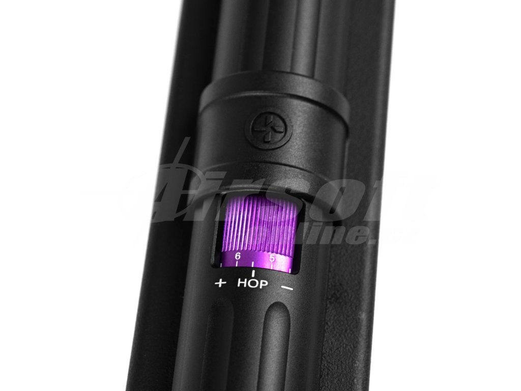Vnitřní hlaveň o průměru 6,03 mm je stabilizována v komoře pomocí klešticové matice, což výrazně zvyšuje přesnost střelby na dlouhé vzdálenosti. Nová CNC hop-up komora má snadno dostupné TDC regulování prstencem jako známe u zbraní typu M249 nebo AEG komor PROWIN/MAXX přímo na vnější hlavni. Regulační prstenec je zakrytý posuvnou krytkou, takže celé nastavení lze provést i rukavicích. Gumička je typu FLAT o tvrdosti 70´. Válec má nově drážkování pro agresivní vzhled a vymezovací vodící kroužky Gen2 pro hladké natahování.