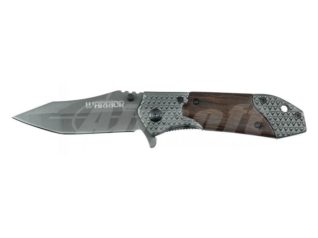 Nůž zavírací s nerezovou čepelí a dřevěnými střenkami.