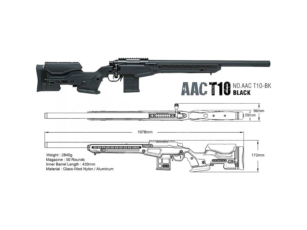 Zbraň má tělo ze zesíleného Nylonu. Vnitřní díly jsou z kovové slitiny. Zásobník se vkládá do těla zbraně před imitaci zásobníku, která je vidět. Do imitace zásobníku lze vložit náhradní zásobník. Zbraň je kompatibilní s díly VSR-10, takže je velká možnost upgradu.