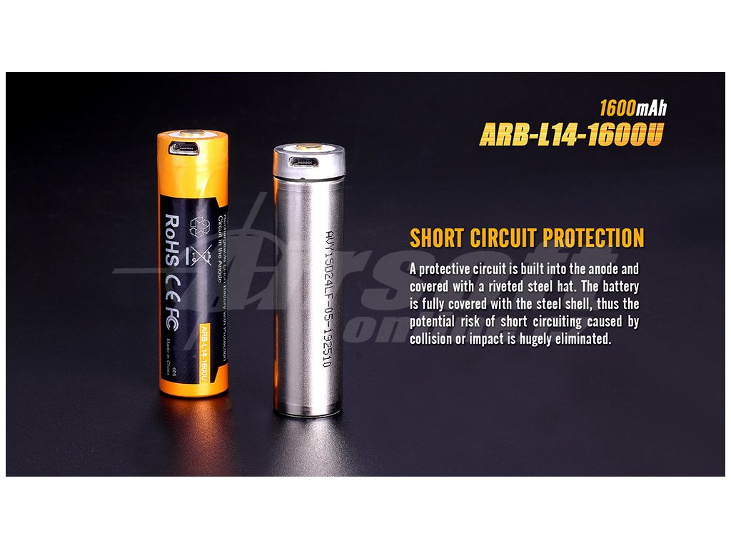 Nabíjecí baterie Fenix ARB-L14-1600U slouží jako náhrada klasických tužkových AA baterií. Uvnitř se jedná o Li-ion článek, který je vybaven regulační elektronikou, která v průběhu vybíjení drží pevné výstupní napětí 1,5 V. Akumulátor je tedy zvláště vhodný do přístrojů, které jsou citlivé na výši napětí a například s nabíjecími NiMH nepracují správně, nebo jen po krátkou dobu. Kapacita akumulátoru je 1600 mAh (2,4 Wh což odpovídá kapacitě 2000 mAh u NiMH).