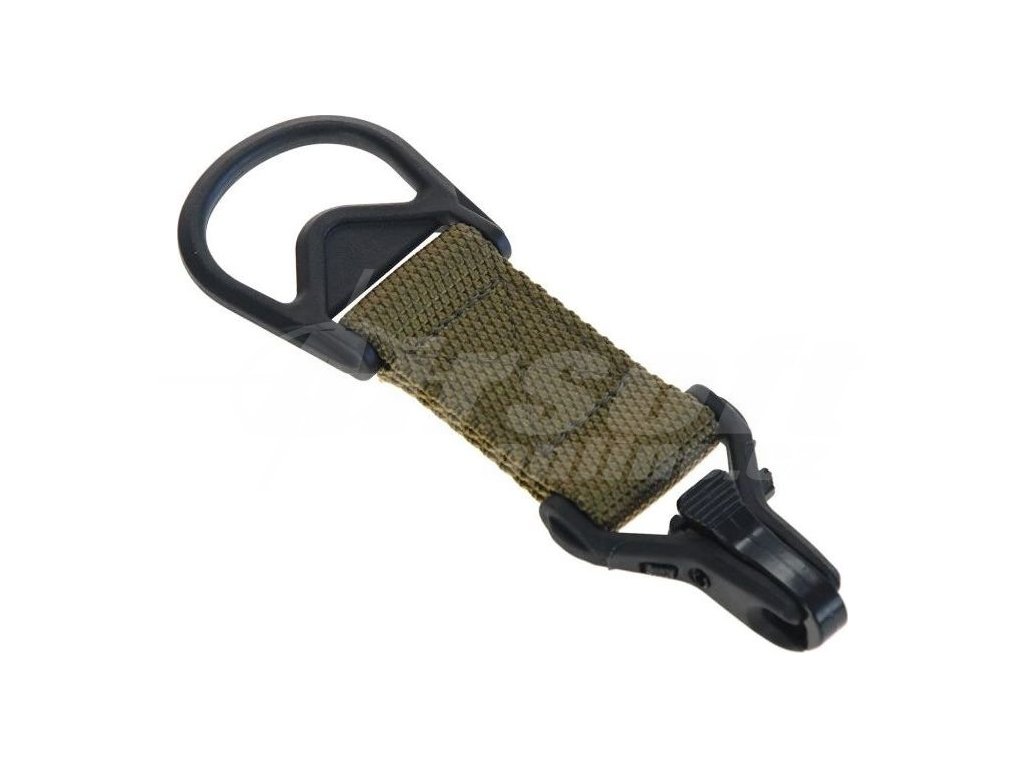 Plastová karabina s okem pro popruhy typu MS3 v pískové barvě.