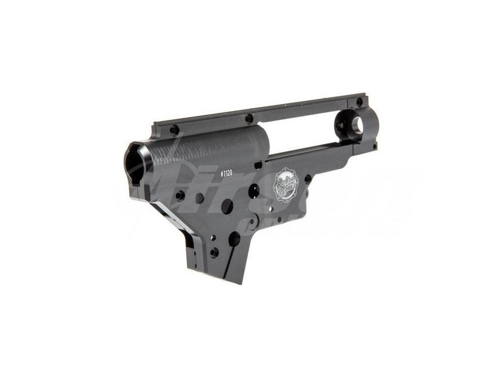 CNC mechabox určený pro airsoftové zbraně typu SR25, vyrobený z bloku nejpevnějšího leteckého duralu EN AW 7075 T651, který má vyšší pevnost v tahu (590MPa), než běžná konstrukční ocel (390MPa). Díky použitému materiálu má mechabox několikanásobně vyšší životnost než běžný zinkolitový mechabox. Mechabox vyrábíme na přesných CNC obráběcích strojích, přímo v naší výrobně. Číslo v závorce (9mm) znamená průměr otvoru pro ložiska.
