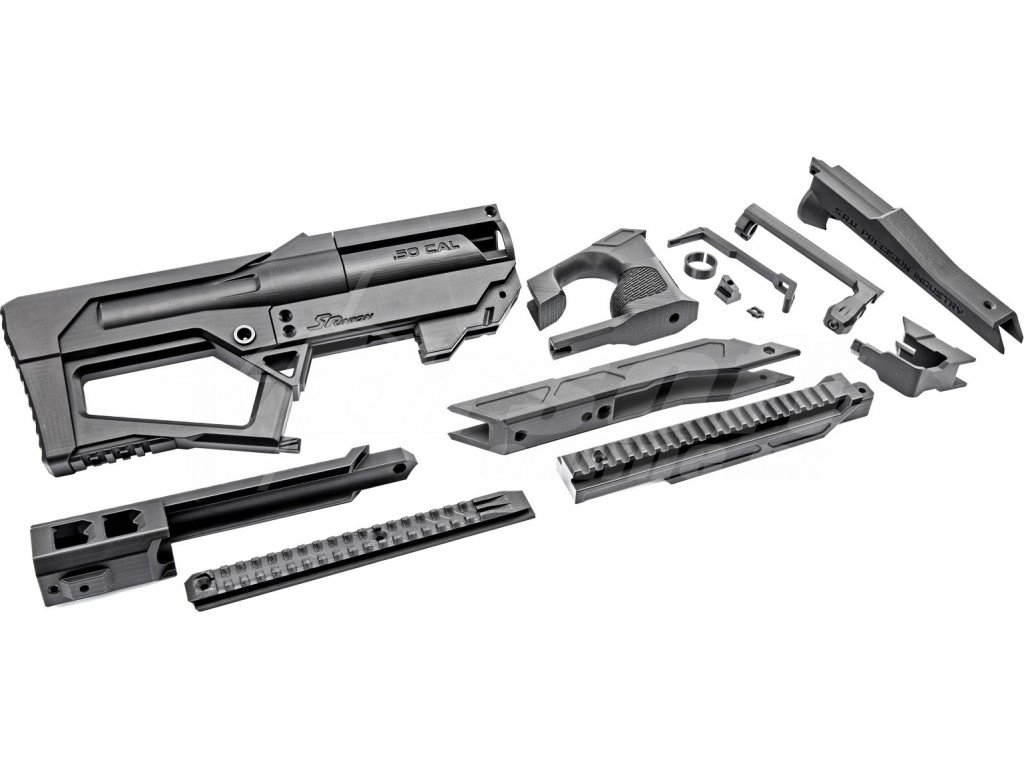 Firma SRU přináší 3D tištěnou konverzi pro Marui VSR10 a kompatibilní zbraně, která dodá vaší zbrani futuristický vzhled. Díky Bullpup koncepci můžete vaši zbraň zkrátit o 300 mm při zachování délky hlavně. Standartní lišta na těle vám umožňuje na zbraň osadit svůj oblíbený puškohled a další lišty umožňují instalaci dalšího příslušenství.