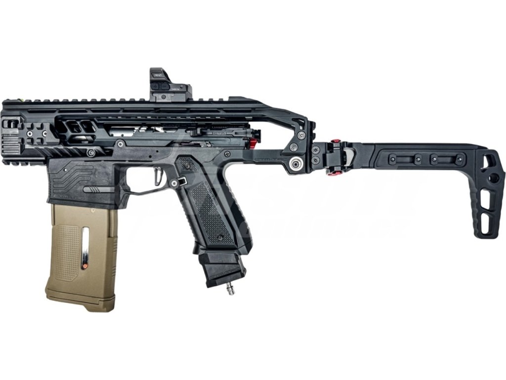 Součástí je integrovaný QD montážní bod s pojistkou proti otáčení, což zvyšuje taktické možnosti uchycení popruhu. Skeleton design pažby je kompatibilní s M-LOK, což umožňuje připevnění dalších doplňků, včetně alternativních patek pažby.