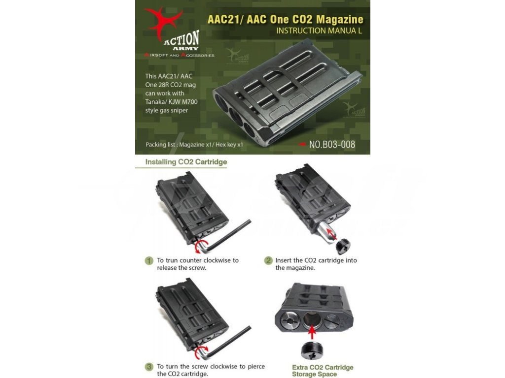 - Kopatibilní se zbraněmi Action Army AAC-01 / ACC-21 / KJ Works M700 / Tanaka M700