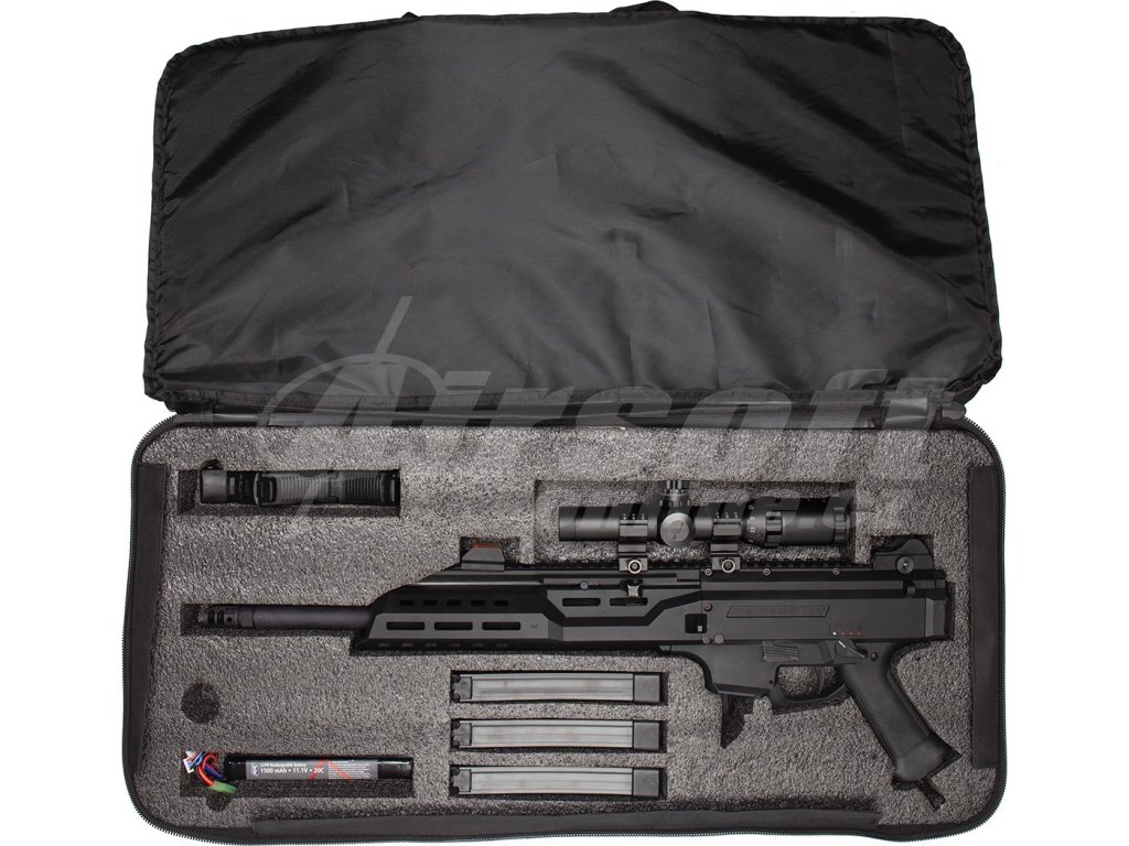 Vyrobeno na speciálně pro zbraně EVO 3 Carbine + B.E.T, tato přepravní taška je vyrobena z nylonu a hlavní prostor je vycpaný pěnou. Pěna udržuje EVO pevně na svém místě s dalším místem pro jakýkoli typ optických zaměřovačů, které by si uživatel mohl přát připojit ke zbrani.