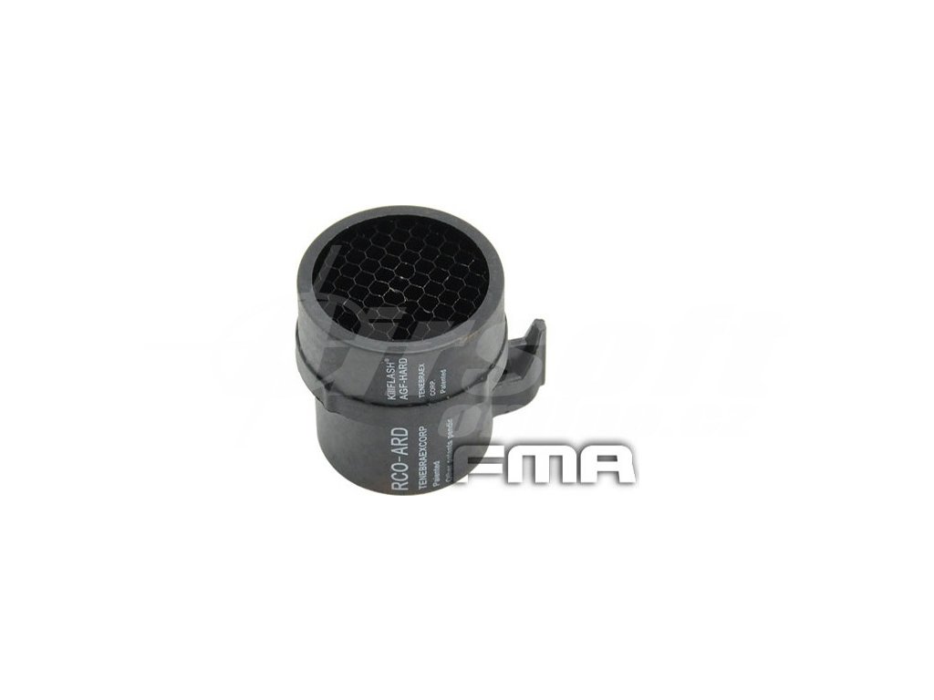 FMA killflash ACOG představuje ochranný prvek puškohledu ve tvaru mřížky z včelích plástů, díky kterému nejen zamezíte odleskům slunce, které by vás mohly prozradit na airsoftových hrách, ale především zabrání poškození skla čočky puškohledu, například prostřelením od dobře mířené kuličky.