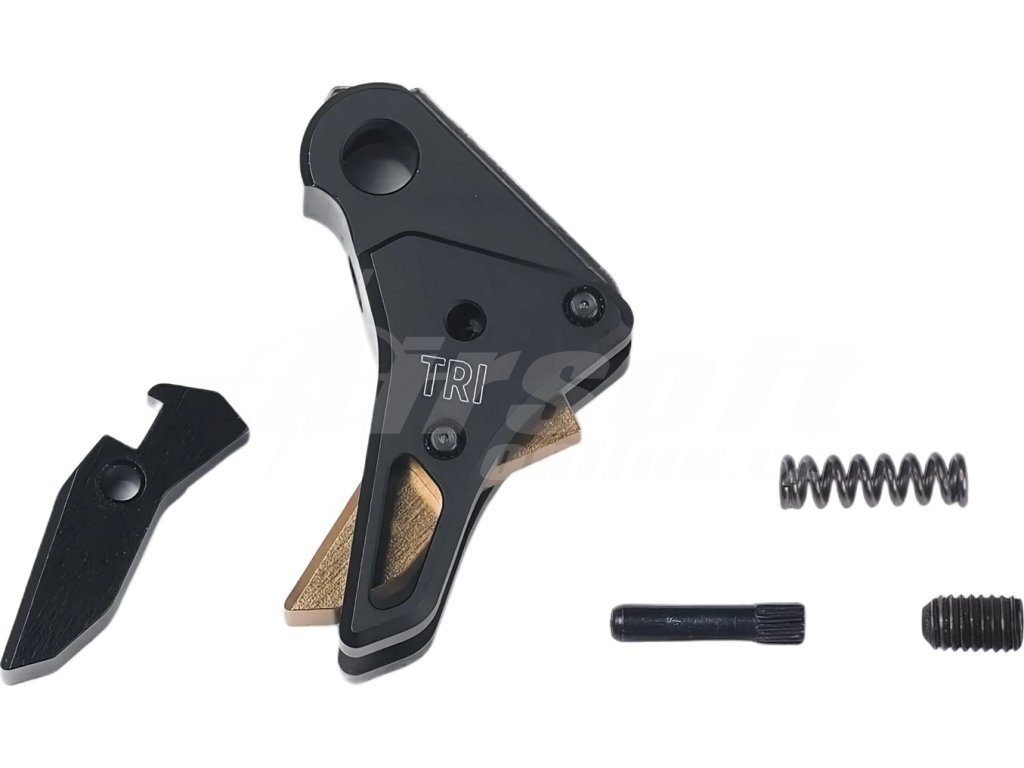 Plně nastavitelné před-natažení (Pre-travel) umožňuje ergonomické přizpůsobení, zatímco plochý profil spouště (Flat Trigger) poskytuje lepší pákový efekt pro pomalé mířené výstřely, ale i pro rychlou střelbu.