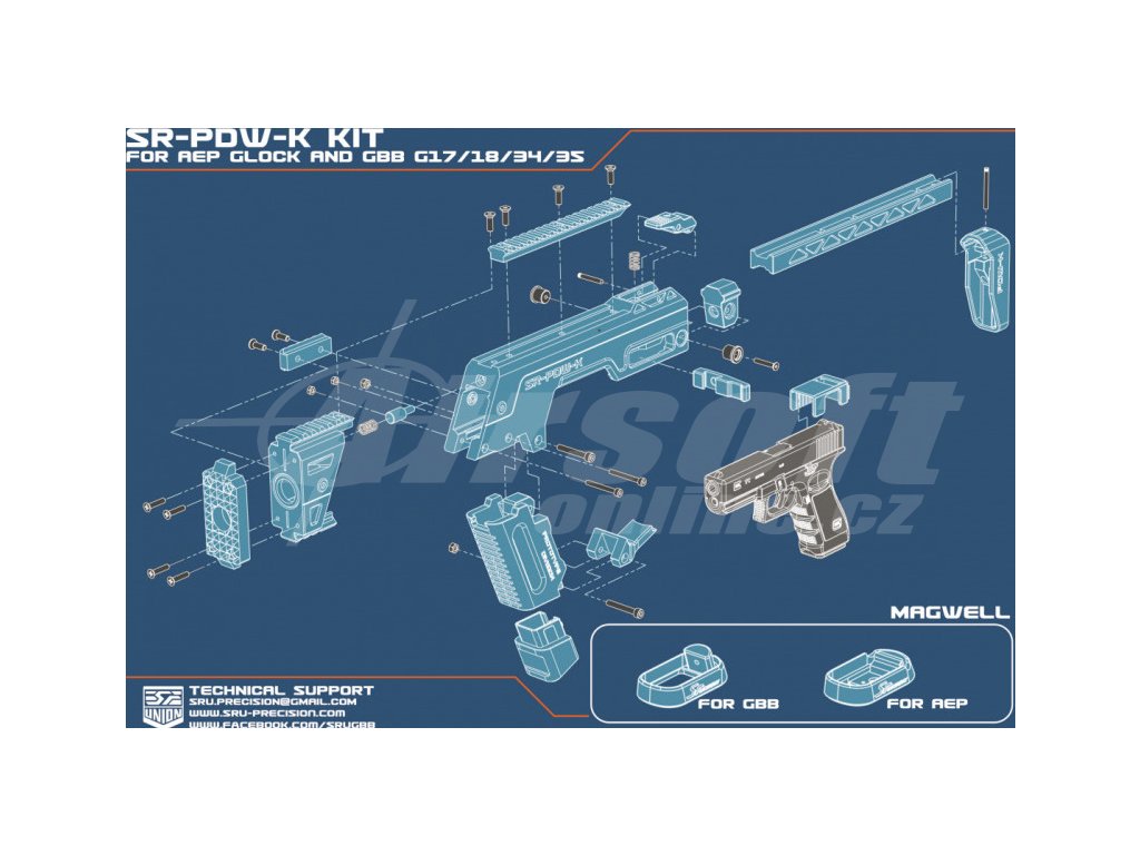- Konverzní kit PDW pro airsoftové pistole typu GLOCK (AEP/GBB)