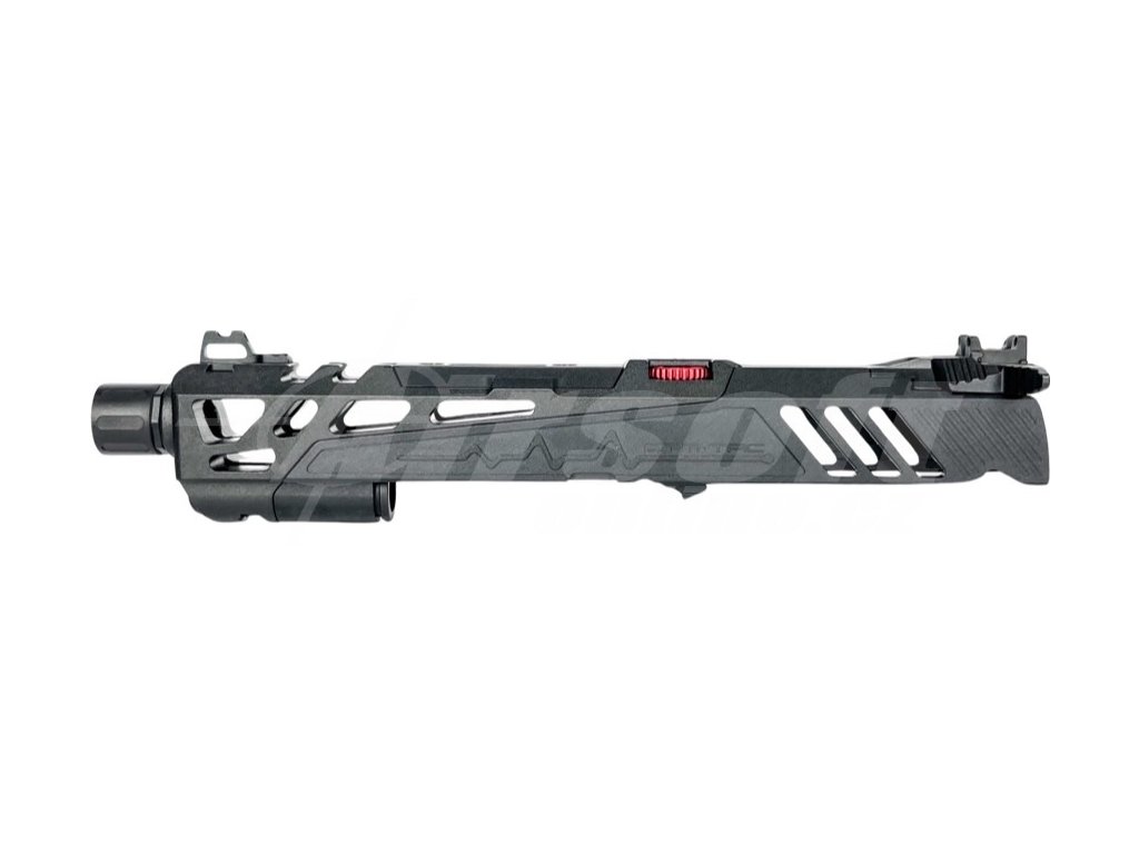 Závěr je vyroben z vysoce odolného hliníku 6061 přesným CNC obráběním a má design split-slide s úpravou pro fixní vnější hlaveň (non-recoil).