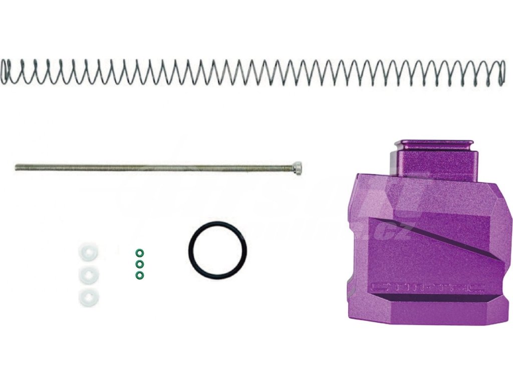 - Hliníková patka zásobníku ve fialovém provedení