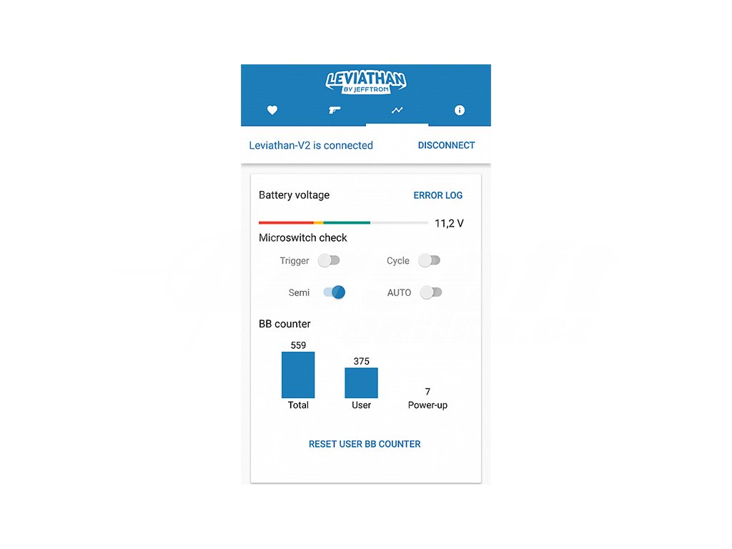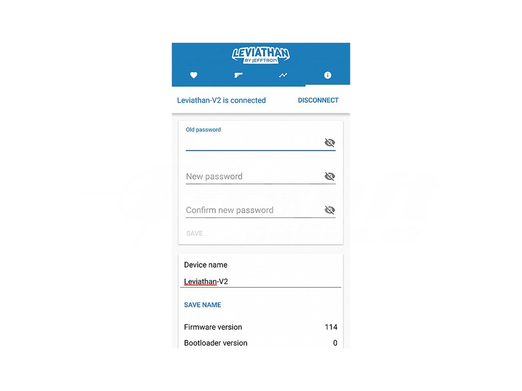 - Změna nastavení se ihned ukládá do paměti Leviathanu - V2, takže se naprogramování neztratí při odpojení od smartphonu nebo baterie
