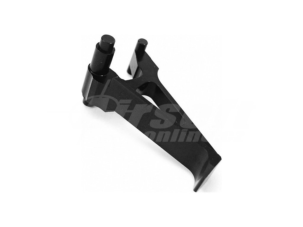 Spoušt je nově navržená tvarová spoušt pro airsoftové zbraně typu AK. Spoušť je vyrobená z leteckého duralu EN AW 7075, který má pevnost oceli a hmotnost hliníku, proto je vhodný na tyto namáhané díly. Spoušť je vyráběná na CNC obráběcím centru a má povrchovou úpravu ochranným eloxování o síle 5µm v několika barevných variantách (0,005mm).