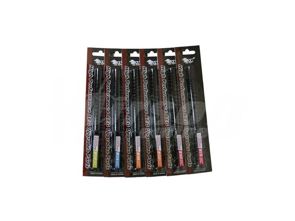 AimTop pružina pro AEG zbraně. Tyto pružiny mají progresivní (proměnné) vinutí, které usnadňuje stlačení v první fázi, přičemž si pružina zachovává dostatečnou sílu.