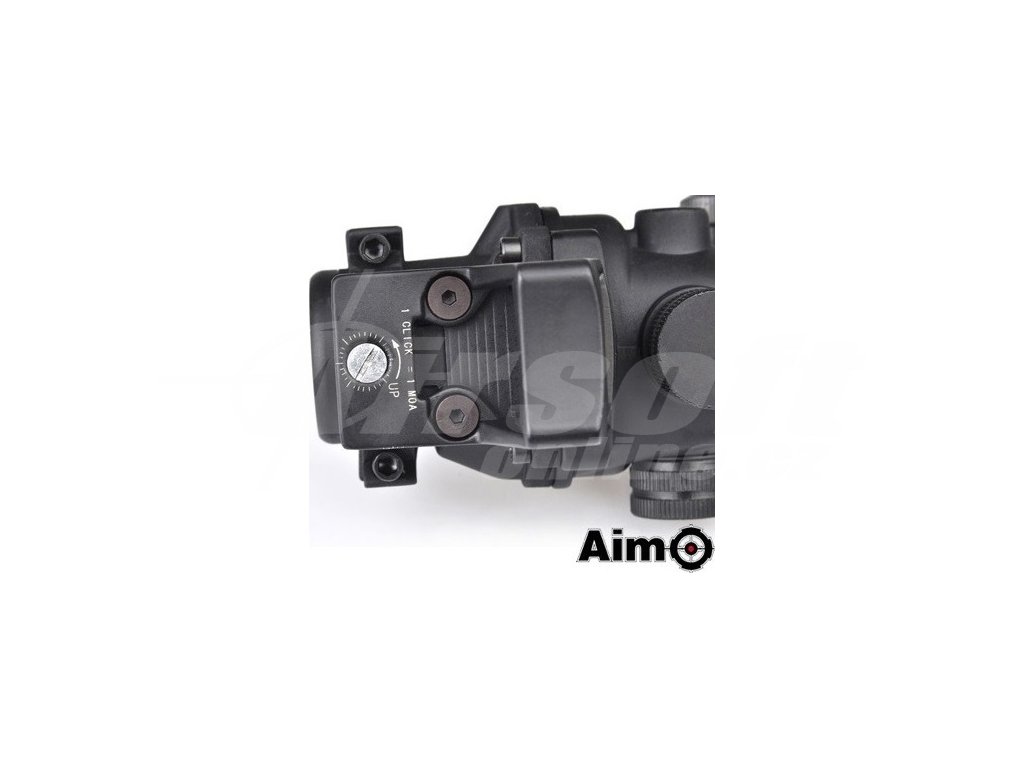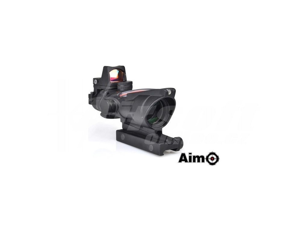 Puškohled od Aim-O založený na populární konstrukci ACOG s velmi ostrým a živým zaměřovacím křížem nastavitelným ve dvou rovinách (pomocí dvou knoflíků). Síťka má červené barevné osvětlení. Největší výhodou je implementace systému optických vláken - ke svému fungování nevyžaduje baterie!
