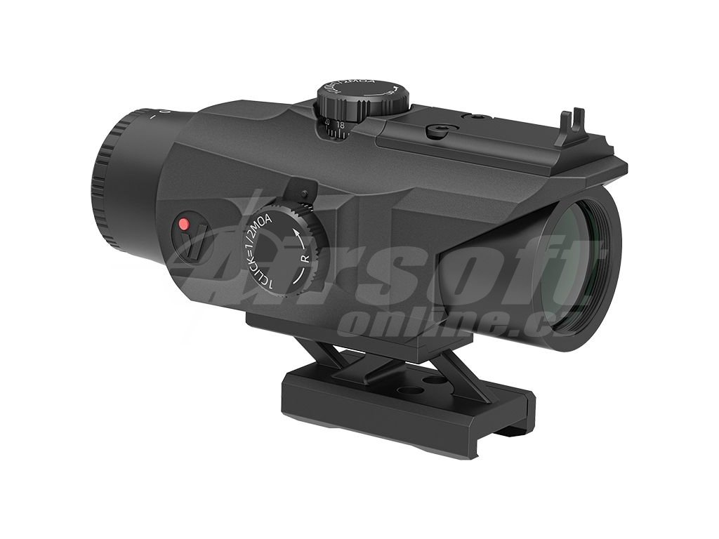 Systém červeného a zeleného podsvícení v 5 úrovních zajišťuje perfektní čitelnost záměrného bodu za jakýchkoliv světelných podmínek – na přímém slunci, za šera i uvnitř budov. Horní strana umožňuje instalaci mikro kolimátoru s footprintem TEK, MOJ nebo MGT, což vytváří univerzální taktický systém zaměřování. Plně vícevrstvě potažená optika (FMC) garantuje jasný obraz, zatímco odolný hliníkový tubus plněný dusíkem zabraňuje zamlžení při teplotních změnách. Pogumovaný plášť poskytuje výjimečnou odolnost proti nárazům (750 G) a voděodolnost IPX4. Perfektní volba pro náročné airsoft hráče, kteří hledají profesionální taktické vybavení s dlouhou životností.