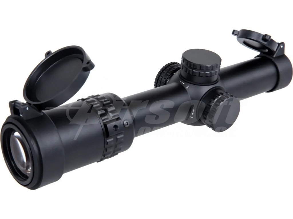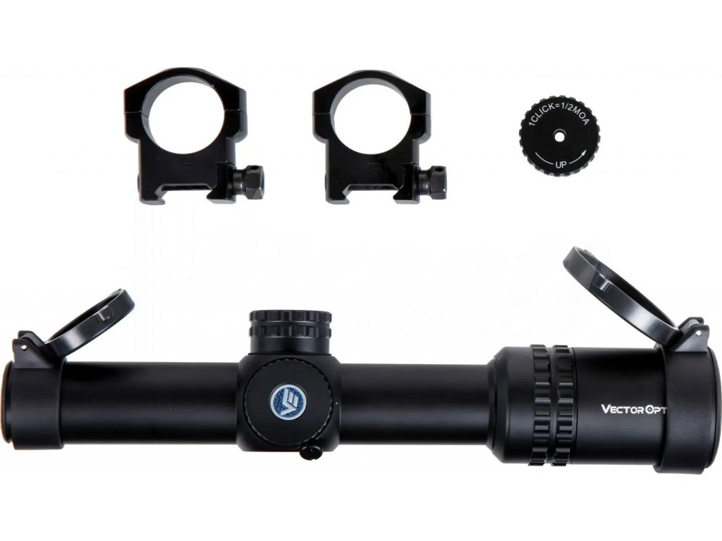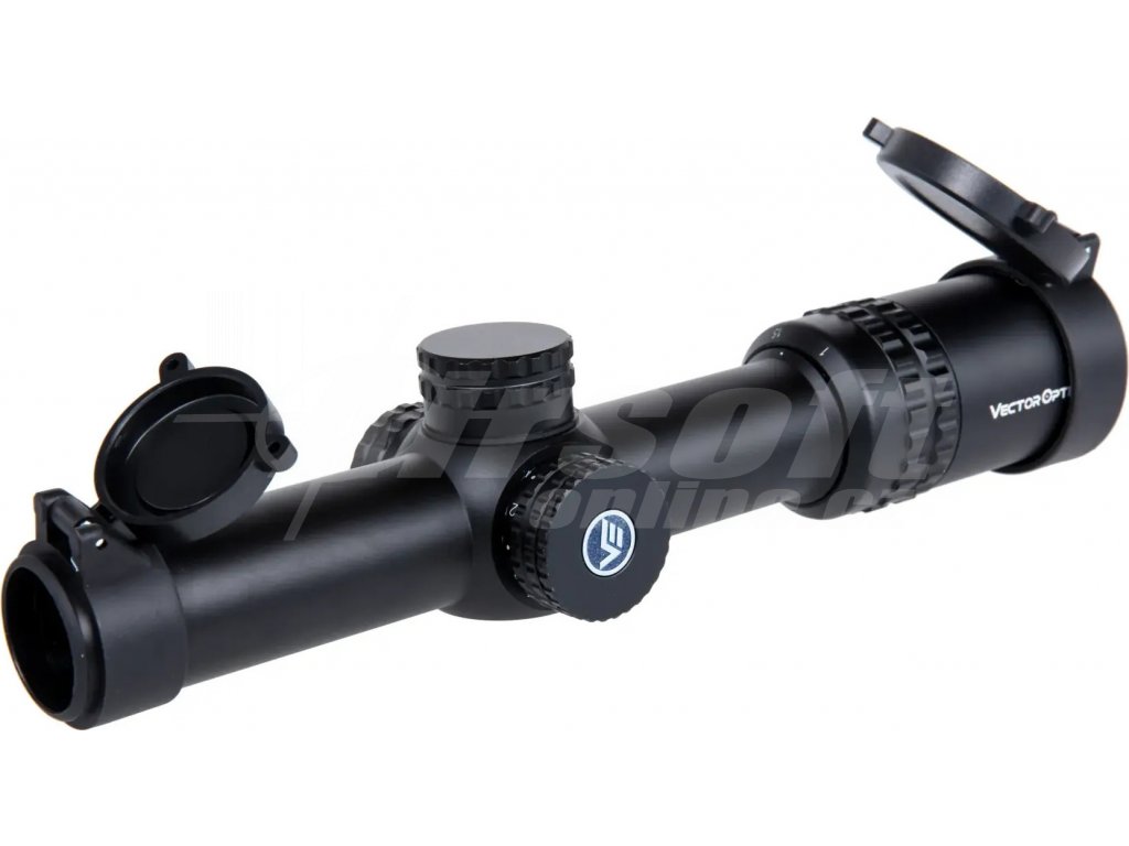 Zaměřovací puškohled od značky Vector Optics je kompletně vyrobený z kovu. Puškohled nabízí rozsah zvětšení 1-6x a umožňuje přesné pozorování a zaměření cíle. Puškohled je dodáván se standardní montážní RIS lištou 22 mm a gumovými krytkami pro ochranu skel. Zaměřovací kříž je osvětlený a má červenou barvu.