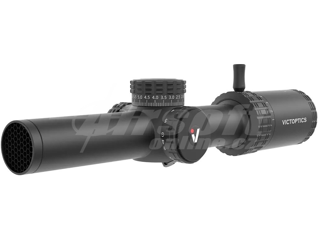 Červené a zelené podsvícení se 6 úrovněmi jasu umožňuje přizpůsobení různým světelným podmínkám. Záměrný kříž VS 10-1 MIL v druhé ohniskové rovině (SFP) zůstává konstantní při změně zvětšení. Přesné věžičky s hodnotou 1/10 MIL a funkcí zámku věžiček zajišťují bezpečné nastavení bez rizika nechtěných změn. Rozsah korekce >35 MIL pro elevaci i vítr poskytuje dostatečnou flexibilitu. Robustní konstrukce z leteckého hliníku 6061-T6 s certifikací IPX5, plněním dusíkem a odolností 750 G zaručuje spolehlivost. Páka pro snadné ovládání zvětšení a výborný oční reliéf 101 mm zajišťují komfortní použití. Perfektní volba pro vaši airsoft výstroj bez nutnosti dokupovat kolimátor.