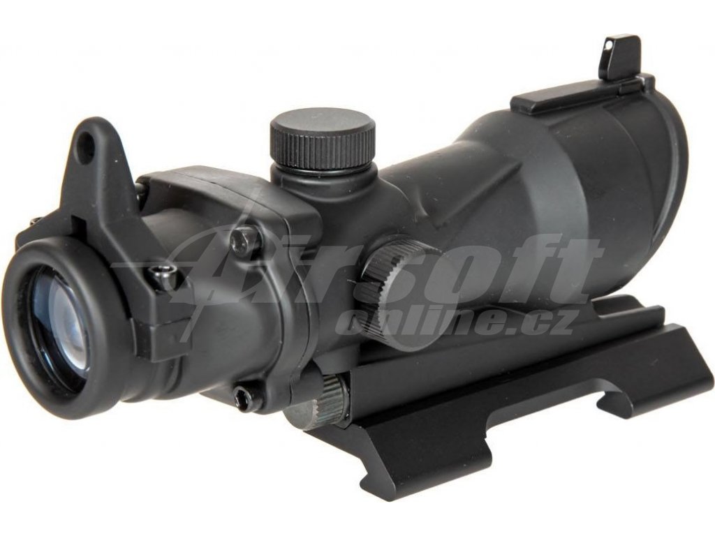 Puškohled stylu ACOG 4x32 s Lighting a Killflash a QD V2 montáží - černý, JJ Airsoft