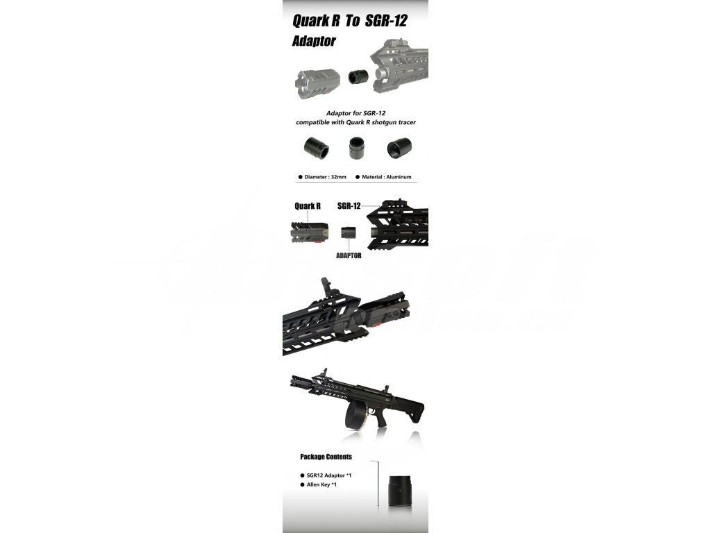 Tento adaptér je určen výhradně pro model SGR-12 od Tokyo Marui a nasvětlovací tlumič Quark-R od AceTech. Umožňuje rychlou instalaci a odejmutí pomocí závitového šroubovacího systému, což zajišťuje pohodlné a bezpečné upevnění nasvětlovací jednotky.