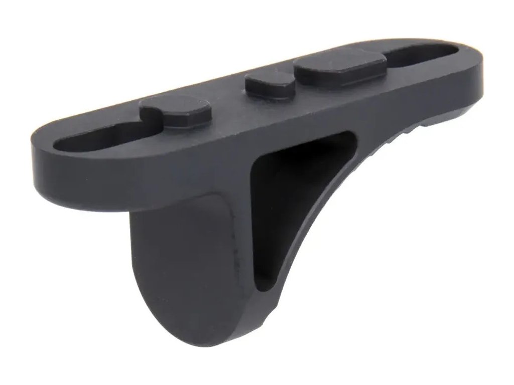 S délkou pouze 54 mm a hmotností pouhých 15 gramů patří mezi nejlehčí a nejkompaktnější zarážky na trhu. CNC obrábění zajišťuje přesné zpracování a vysokou odolnost. Černé provedení je ideální pro taktickou výstroj a moderní airsoftové repliky. Tato krátká zarážka typu B5 výrazně zlepšuje stabilitu úchopu a kontrolu nad zbraní při rychlých manévrech a střelbě.
