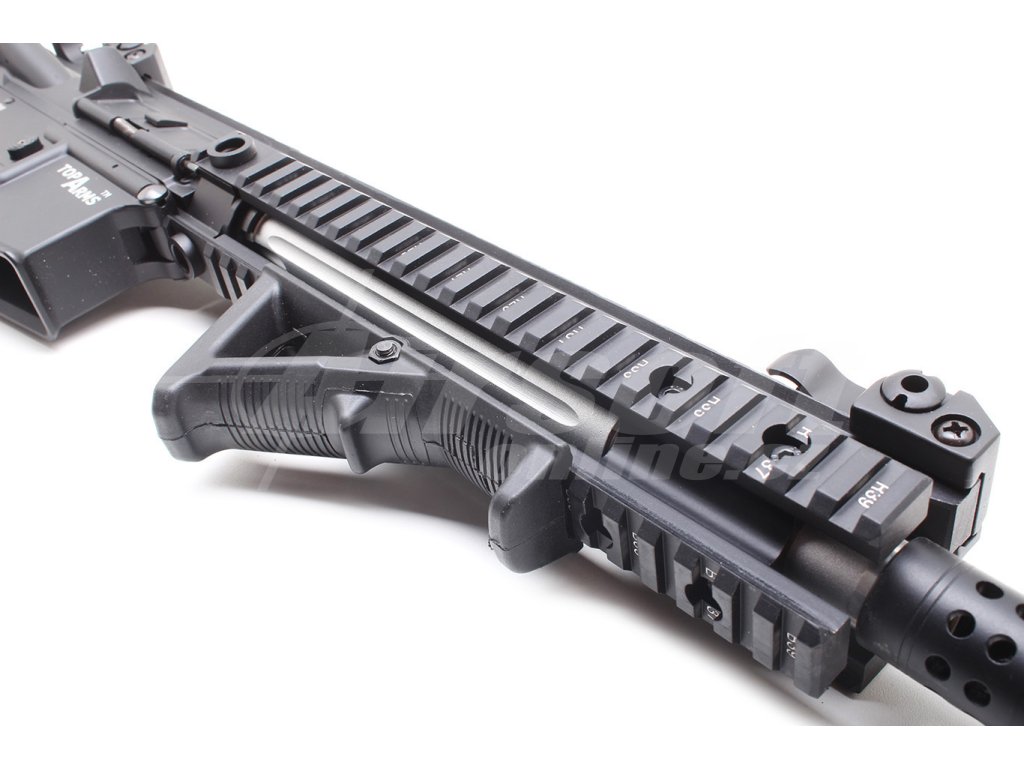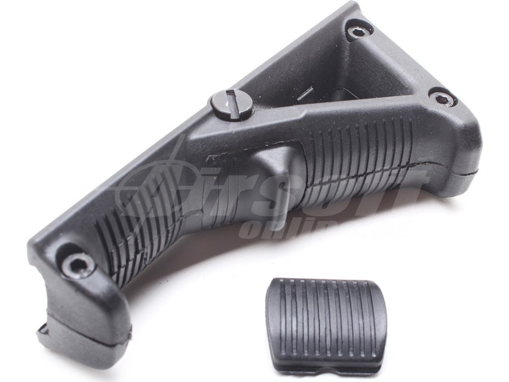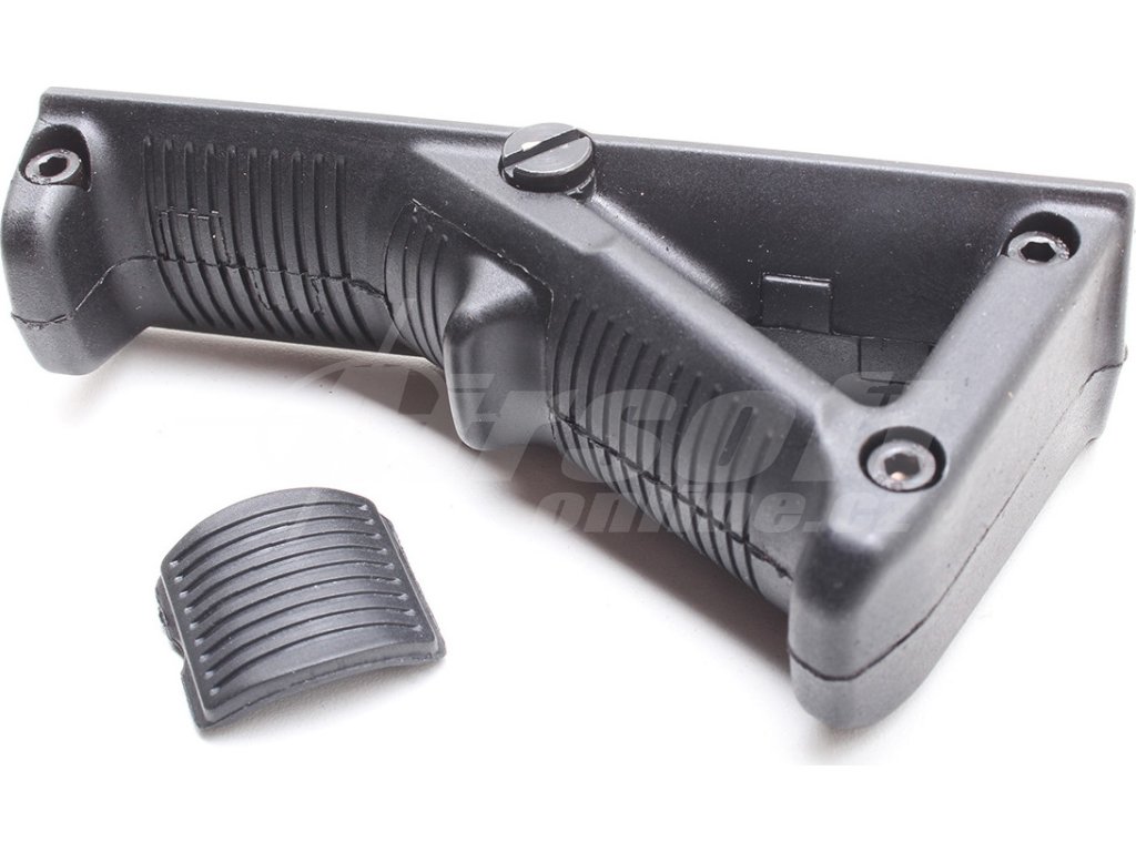 Na rozdíl od běžných vertikálních rukojetí zohledňuje tato rukojeť přirozené držení těla. Poskytuje komfortní a stabilní spojení střelce se zbraní a snižuje jeho únavu. Rukojeť je možné připevnit na běžní RIS lišty nejen airsoftových zbraní. Vyrobeno z odolného plastu.