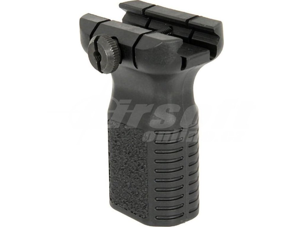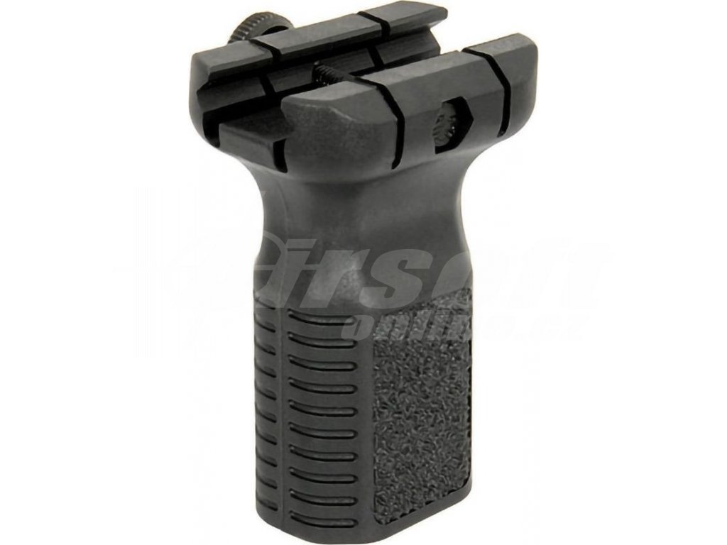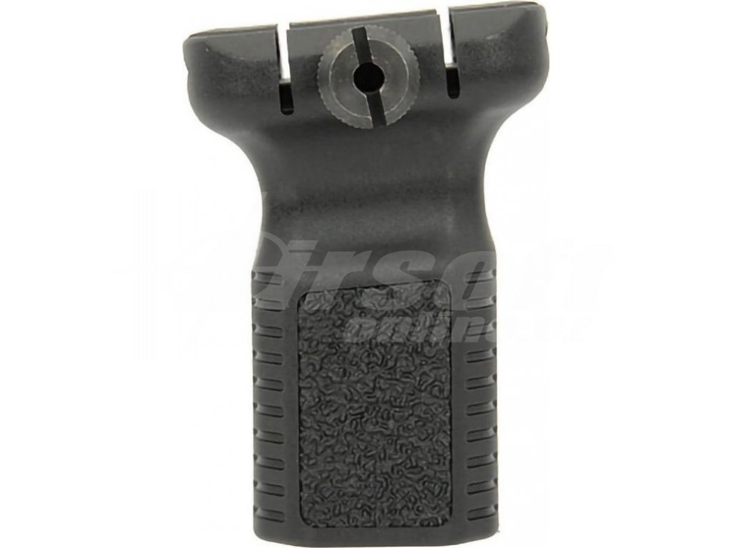 Krátká vertikální rukojeť v černé barvě s uchycením na RIS lištu.