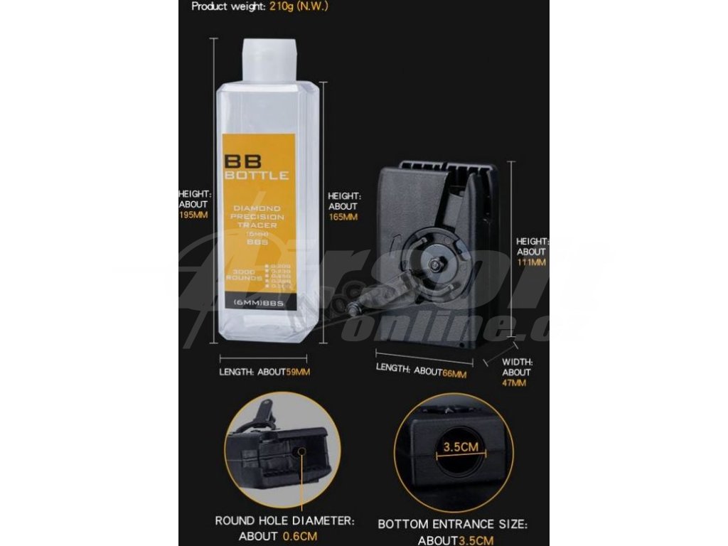 Rychloládovačka Lever Silence je nezbytnou součástí výbavy každého hráče airsoftu. Rychlým otáčením klikou lze téměř každý zásobník M4 velmi rychle naplnit. Kompaktní velikost této rychloládovačky se perfektně vejde do každého dvojitého pouzdra na zásobníky M4, abyste jí mohli snadno mít stále u sebe. Díky přidané vnitřní silikonové vrstvě můžete mít ládovanou stále u sebe aniž by bylo slyšet jak kuličky cinkají a hrkají o plastovou komoru ládovače.