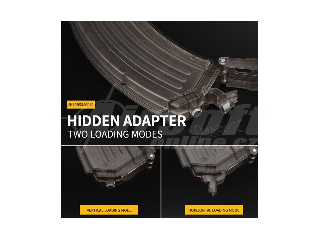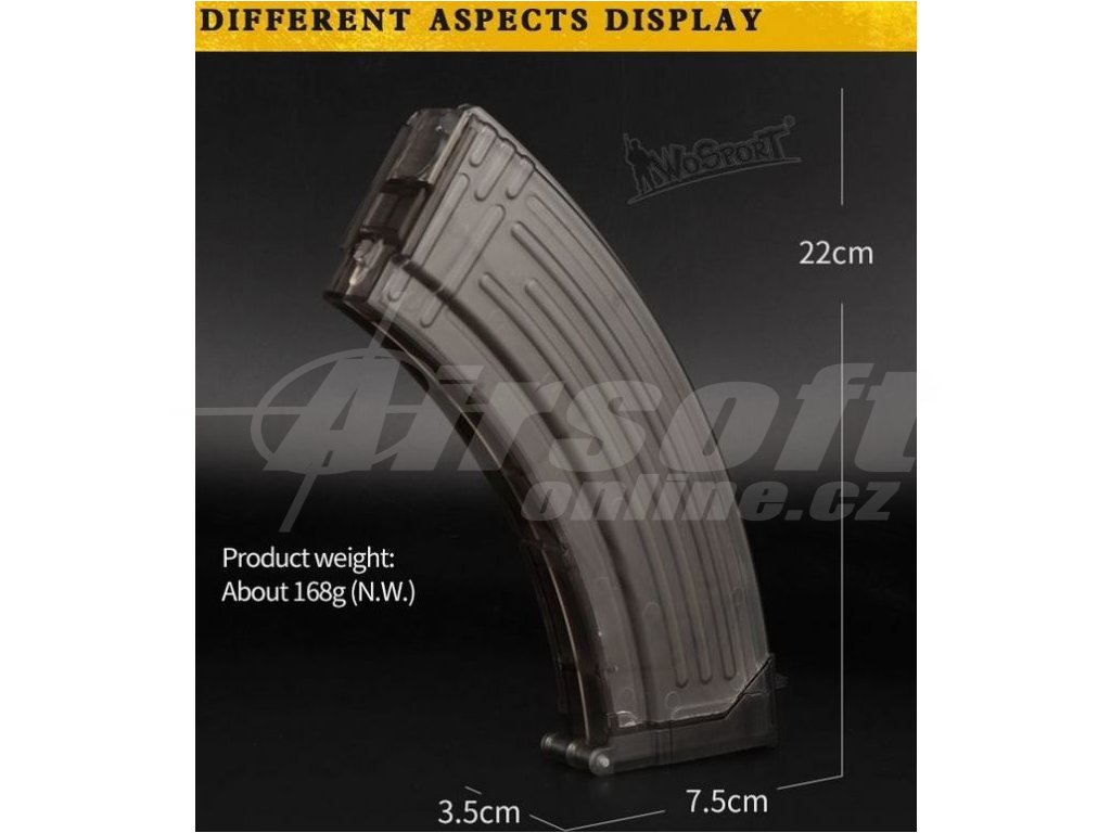 Rychloplnička ve tvaru zásobníku AK - tmavě průhledná, 1000bb, Wosport