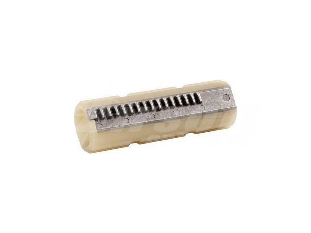 Píst s polovičním ozubením pro mechaboxy V2/V3, vyrobený z plastu vyztuženého vlákny. 16 zubů je vyrobeno z uhlíkové oceli. Díky tomu je tento píst vhodný i pro silné pružiny až do M150.