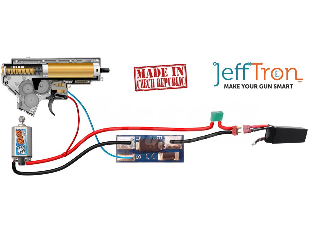 JeffTron je česká společnost, která se specializuje na výrobu elektronických komponentů pro airsoftové zbraně. Firma si získala renomé především díky svým vysoce kvalitním MOSFET jednotkám, které výrazně zvyšují výkon a spolehlivost airsoftových zbraní. JeffTron je rovněž oblíbený pro své vnitřní součástky a další elektronické komponenty, které přispívají k vylepšení funkcionality a dlouhé životnosti airsoftových replik. Navzdory své globální popularitě a přítomnosti na mezinárodním trhu jsou veškeré produkty JeffTron stále vyráběné v České republice. |