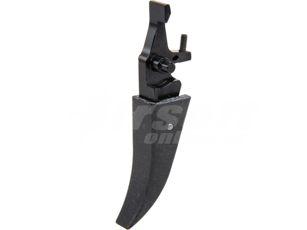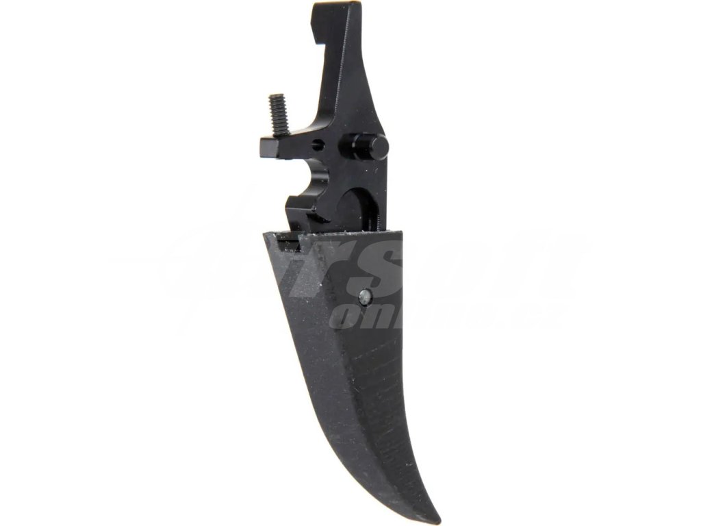 - Curved CNC spoušť černé barvy s nainstalovaným adaptérem pro MP5 airsoftovou zbraň
