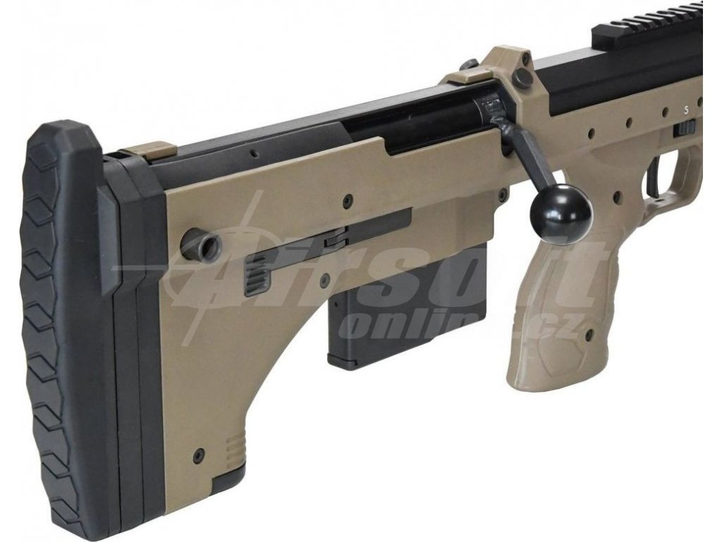 Licencovaná replika Desert Tech Scout Recon Stealth A2 bullpup sniper pušky je jednou z nejpopulárnějších a nejmodernějších airsoftových odstřelovaček současnosti.