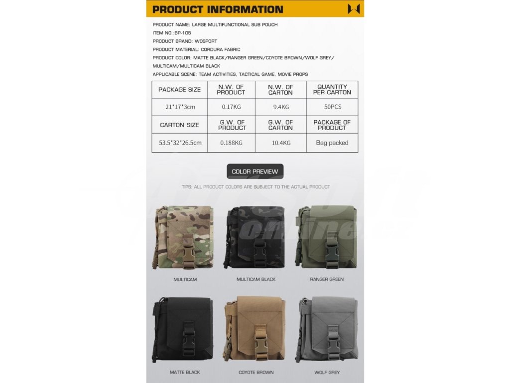 Velká multifunkční MOLLE sumka s kapsou na vysílačku - MC, Wosport