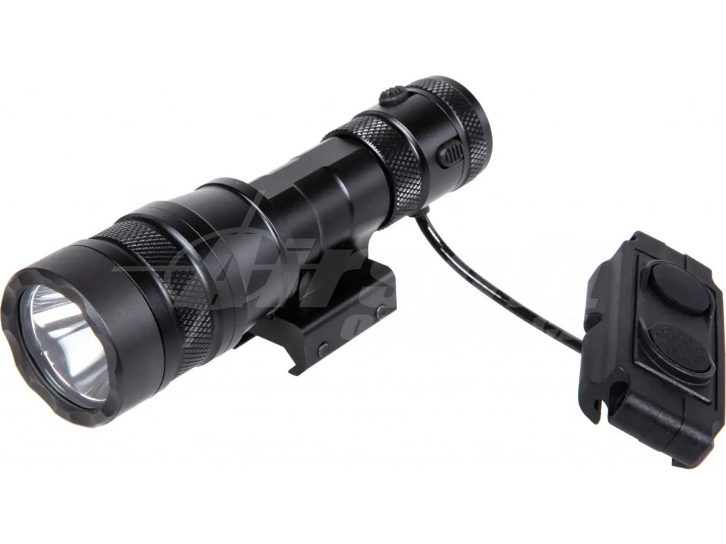 Taktická Micro LED svítilna RAIN 1.0 od společnosti WADSN s výkonem 1000 lumenů vyrobena z hliníku. Svítilna se ovládá pomocí tlačítka na zadní straně svítilny nebo díky tlačítkům na kabelu. Možnost změny výstupu kabelu do ovladače ve čtyřech směrech.