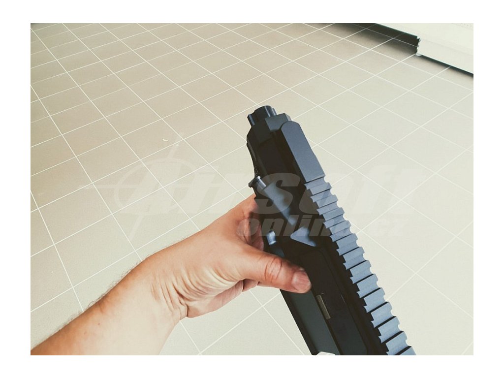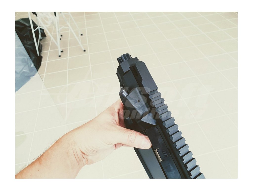 Na Upperu (horní část těla) tohoto těla najdete precizně vyfrézovanou RIS lištu MIL-STD-1913 a možnost použití původní nebo custom natahovací páky. Odražeč nábojnic a doraz závěru jsou součástí Upperu, což zajišťuje maximální pevnost a odolnost. Pro snadný přístup k nastavení přítlaku Hop-Up komory slouží praktická protiprachová krytka na pružině. Páka závěru nemá funkci otevírání protiprachové krytky, ale jen imitační. Krytka se otevírá prsty.