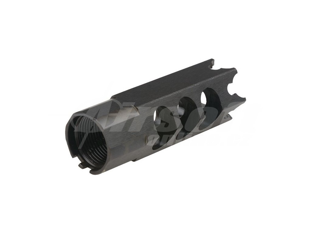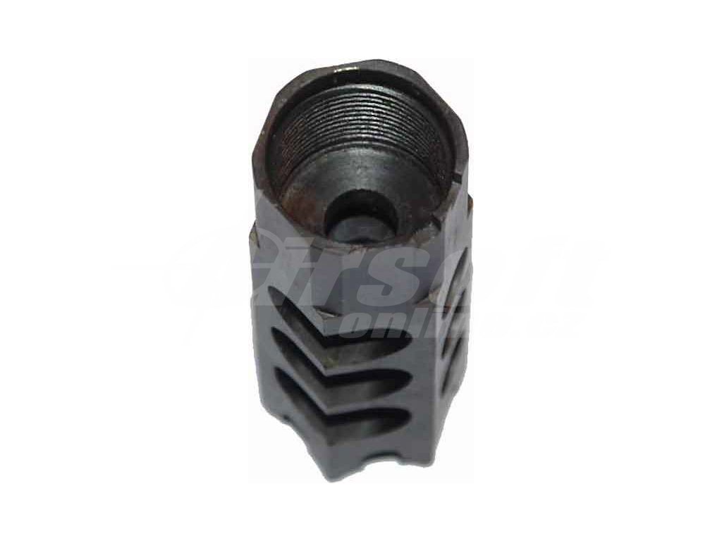 Stylový ocelový tlumič výšlehu pro Vaše airsoftové zbraně, který se vzhledově hodí hlavně pro zbraně typu AK. Vnitřní závit je levotočivý, takže se hodí pro všechny typy airsoftových zbraní. Tlumič výšlehu je ocelový, díky čemuž je zaručená vynikající odolnost vůči mechanickému poškození.