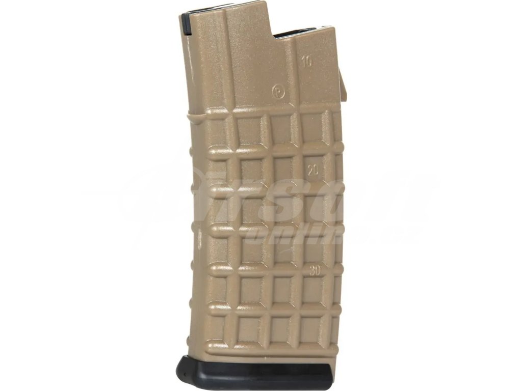Zásobník Hi-Cap pro AUG - pískový TAN, ABS, točný, 300bb, A.C.M.
