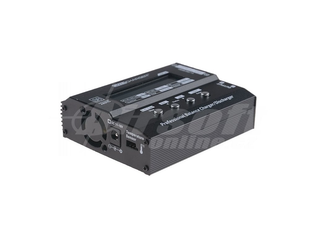 Kompaktní a univerzální nabíječka s integrovaným balancerem pro lepší kontrolu nabíjení. Tato nabíječka umožňuje nabíjení baterií LiIon , LiPol, LiFe , Ni-Cd, Ni-MH a PB. Spodní část nabíječky je vybavena velkým radiátorem, který odvádí teplo skvěle. Je možné změnit nabíjecí proud.
