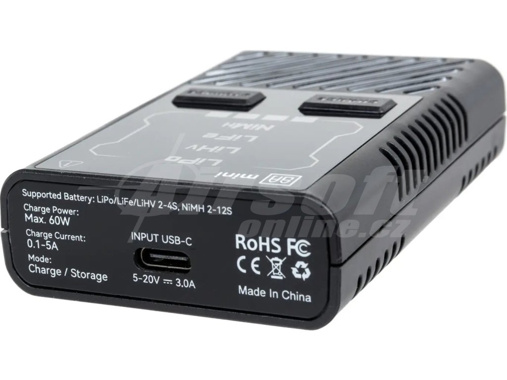 Nabíječka zvládne nabíjecí výkon až 60 W a nabíjecí proud až 5 A (automaticky nastavovaný). Díky tomu se baterie nabijí rychle, bezpečně a efektivně. Při nabíjení dochází k vyvážení napětí mezi články – tzv. balancování – s proudem 0,4 A na článek, což prodlužuje životnost vašich akumulátorů.