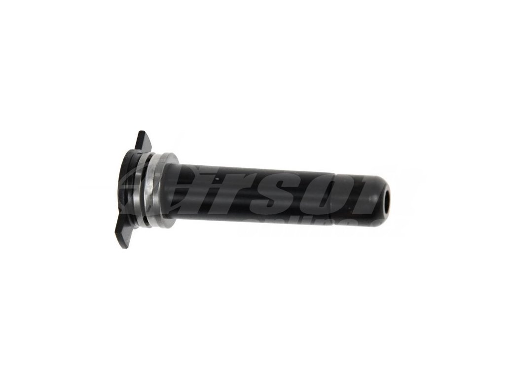 ASG vodící trn pružiny s ložiskem nahrazuje originální plastový díl ve zbrani. Přináší odolnou kovovou konstrukci a je vhodný i pro nejsilnější pružiny. Unikátní je rotační tělo trnu s ložiskem. Pružina se o tuto část opírá. To usnadňuje její otáčení při stlačení a redukuje odpor, což má kladný vliv na chod zbraně.