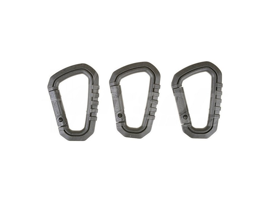 Set tří univerzálních karabin Snap Hooks, které jsou vyrobené z kvalitního a odolného plastového materiálu. Jsou vhodné jako náhrada za klasické kovové karabiny u taktických vest, batohů atd.