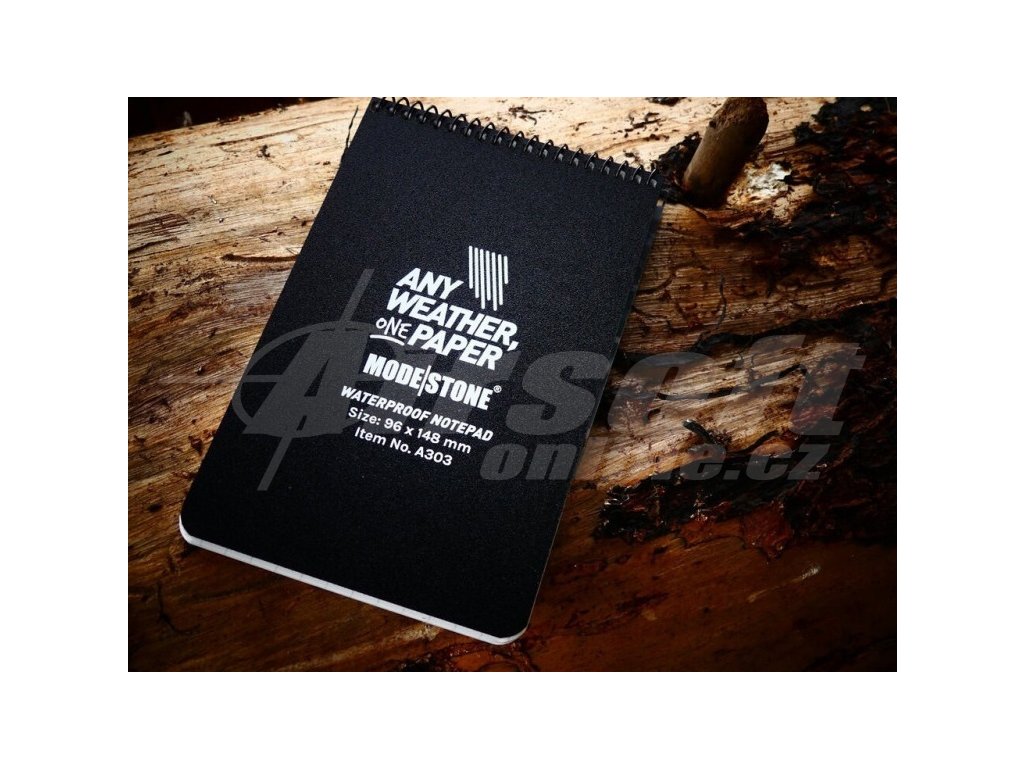 Nejmenší z rodiny voděodolných zápisníků Modestone, má velikost, díky které se vejde do kapsy uniformy, pracovních kalhot, nebo batohu. Umožní Vám pořizovat nákresy a poznámky v terénu v extrémních klimatických podmínkách. Byl vyvinut pomocí šetrné ekologické technologie z tzv. kamenného papíru. Je ideální pro použití v ozbrojených silách, v záchranářských složkách, v soukromém sektoru i při sportu. Můžete do něj psát během vojenské nebo policejní akce, ale i pořizovat zápisky na rybách, na stavbě i doma ve sprše.