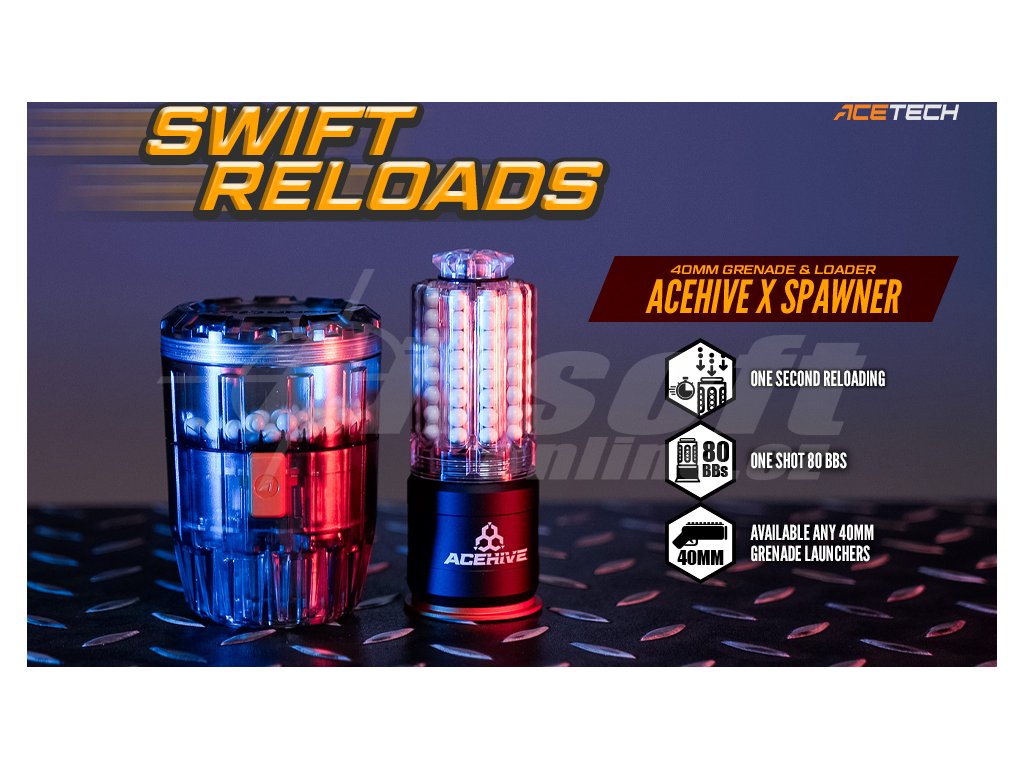 40mm airsoftový granát AceHive na 80bb - 2ks, rychloplnička Spawner, ACETECH