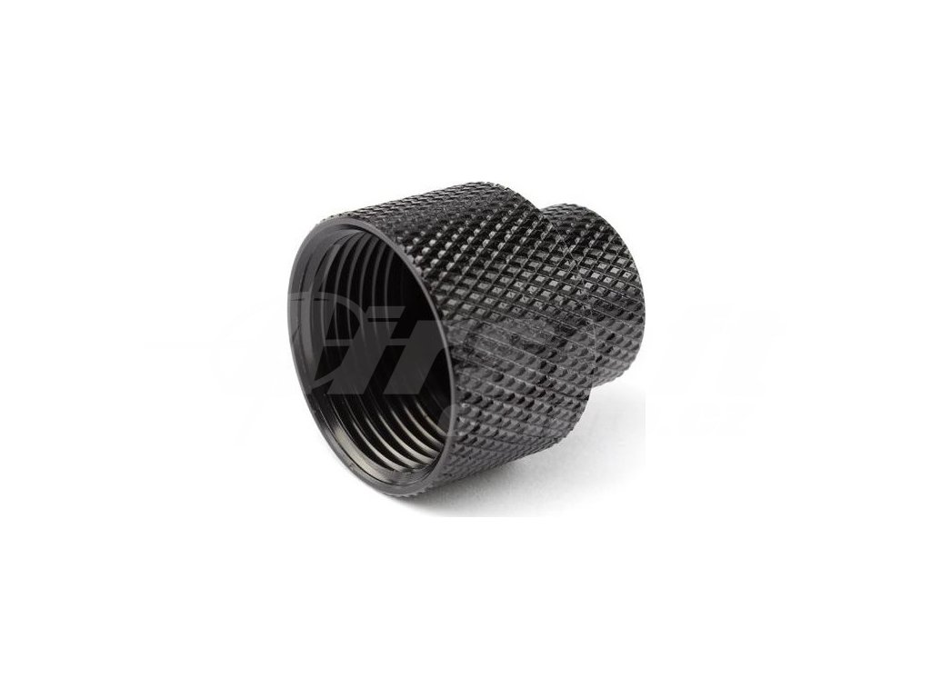 Adapter (redukce) na tlumič pro airsoftové zbraně. Jednoduše se našroubuje na závit na konec hlavně pušky Striker. Na menší závit pak můžete našroubovat libovolné tlumiče, nebo kompenzátory se standardním 14mm levotočivým závitem. Adapter je vybaven i šroubovacím ochranným krytem, který brání poškození, nebo znečištění závitu.