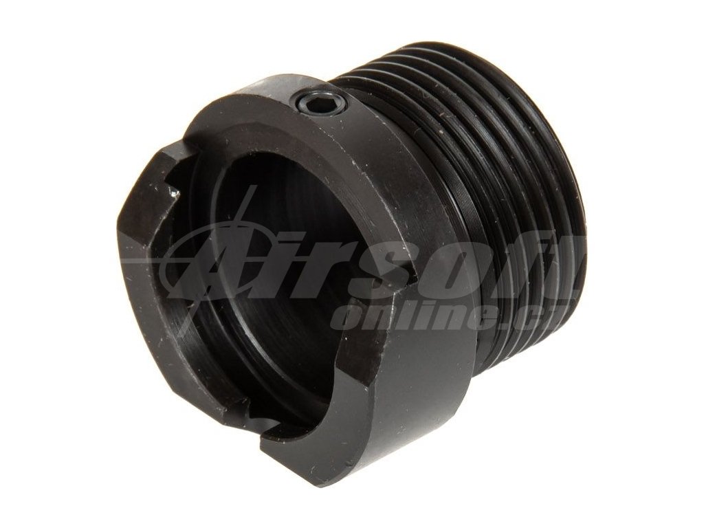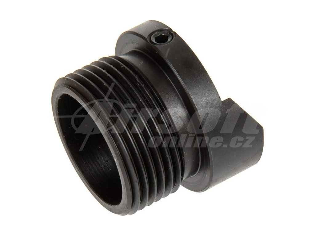 - Adaptér je určen pro upevnění tlumičů s pravotočivým závitem 24mm, často používaných u replik tlumičů a tlumičů výšlehu pro zbraně typu AK.