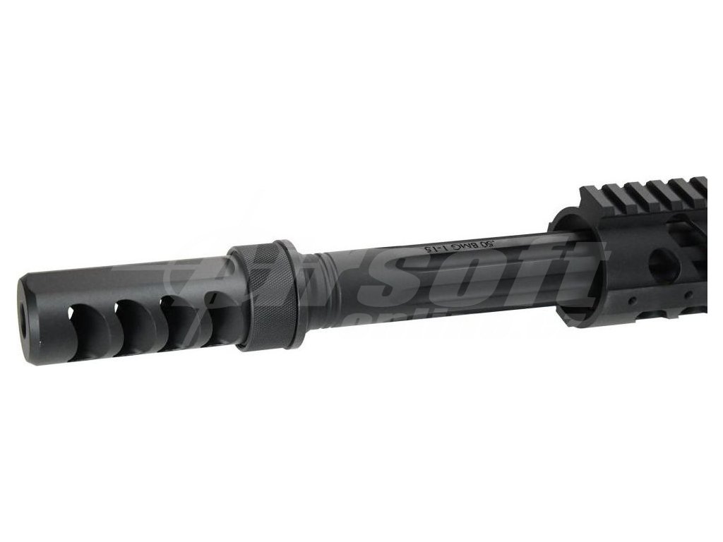 Vnější hlaveň má drážkování a na jejím konci je masivní úsťová brzda .50 BMG. Ta je usazena na závitu M25x1,5 a lze ji nahradit tlumičem Elite Iron Alpha .50 nebo adaptérem pro M14x1 levotočivý závit.