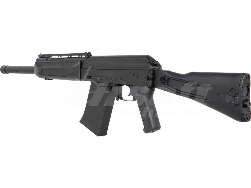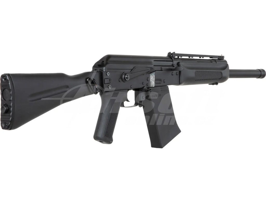 Ergonomická sklopná pažba, pohodlná rukojeť, magwellova rozpěrka a vylepšený zásobníkový spoušťový mechanismus zvyšují komfort při manipulaci a přebíjení. Zásobník je typu Hi-Cap s kapacitou 300 BBs, ideální pro delší přestřelky bez častého nabíjení.