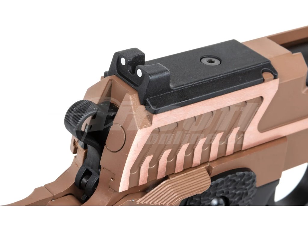 Základem této pistole je celokovové tělo, které doplňuje bronzová vnitřní hlaveň o délce 112,5 mm, regulovatelný Hop-Up a systém realistického blowbacku. S úsťovou rychlostí až 90 m/s (295 FPS) a energií 0,81 J nabízí výborný poměr mezi výkonem a ovladatelností.